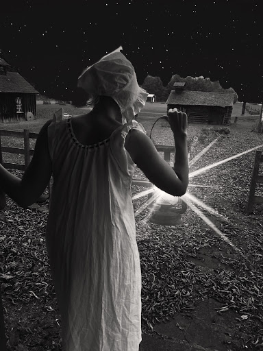 A noise, a rustle, a cry through the night. It pierced through the old house’s wall and she heard it. Her blood went cold and a shiver snaked down her spine…. sleep had vanished from her mind. She threw off her quilts and stepped onto the cold floor. She reached for the lantern and fumbling with the match touched the flame to the kerosene wick. Then padded softly to the door and opened the latch, with a creek it closed behind her. It wasn’t only only the night chill that made her shiver.