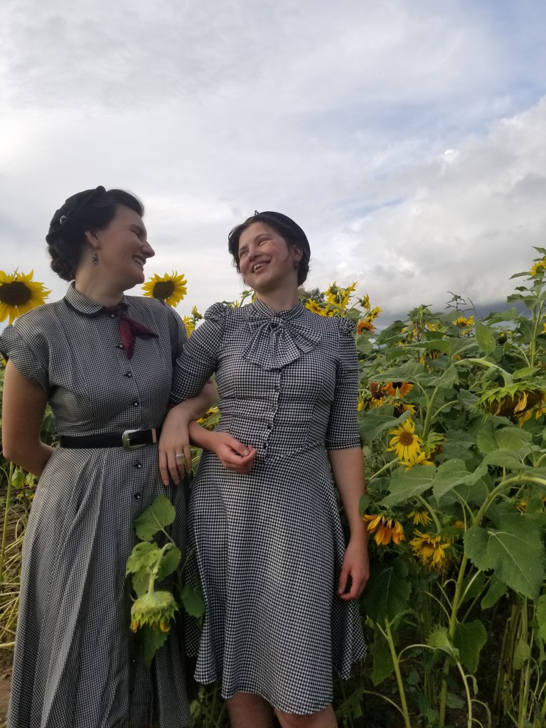 It all started when I got a black and white checked dress, and then my teacher Sara realized she had one that was very similiar. Of course the only logical thing to do with this information was dress up and go take photos in a sunflower field!