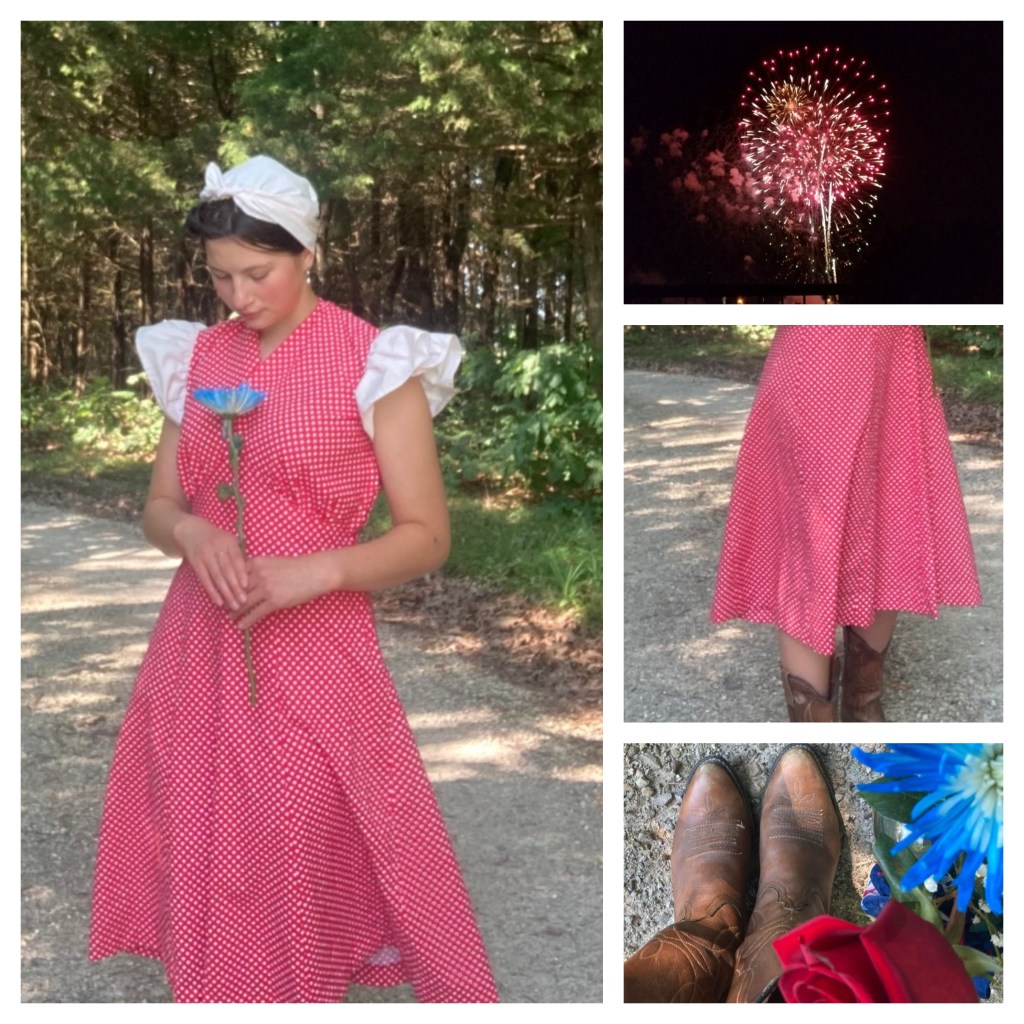 My first outfit to make in Missouri was this polka dot dress, again from a actual vintage pattern! I made it for the 4th of July celebration, it was my first big fireworks show that I went to ever!! It was really great!
